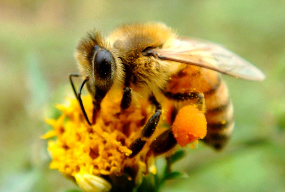 3、看这个可爱的小东西,别小看它,它虽然很丑陋,但是它可是勤劳的代言人哦。毛茸茸的身子上面有和老虎一样条纹,金子一样颜色的翅膀好像是上天给它的奖励。