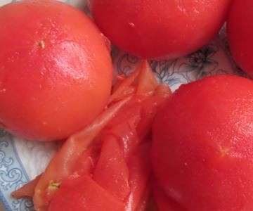 1、首先把准备好的西红柿用开水烫一下,去皮。