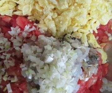 准备材料:面团 400克、西红柿 适量、虾仁适量、鸡蛋适量、盐适量、大葱适量、花生油 适量。