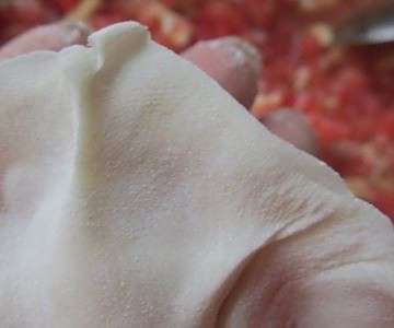 7、包入馅料,包成饺子。