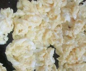 3、锅内放油加热,磕入准备好的鸡蛋炒碎。