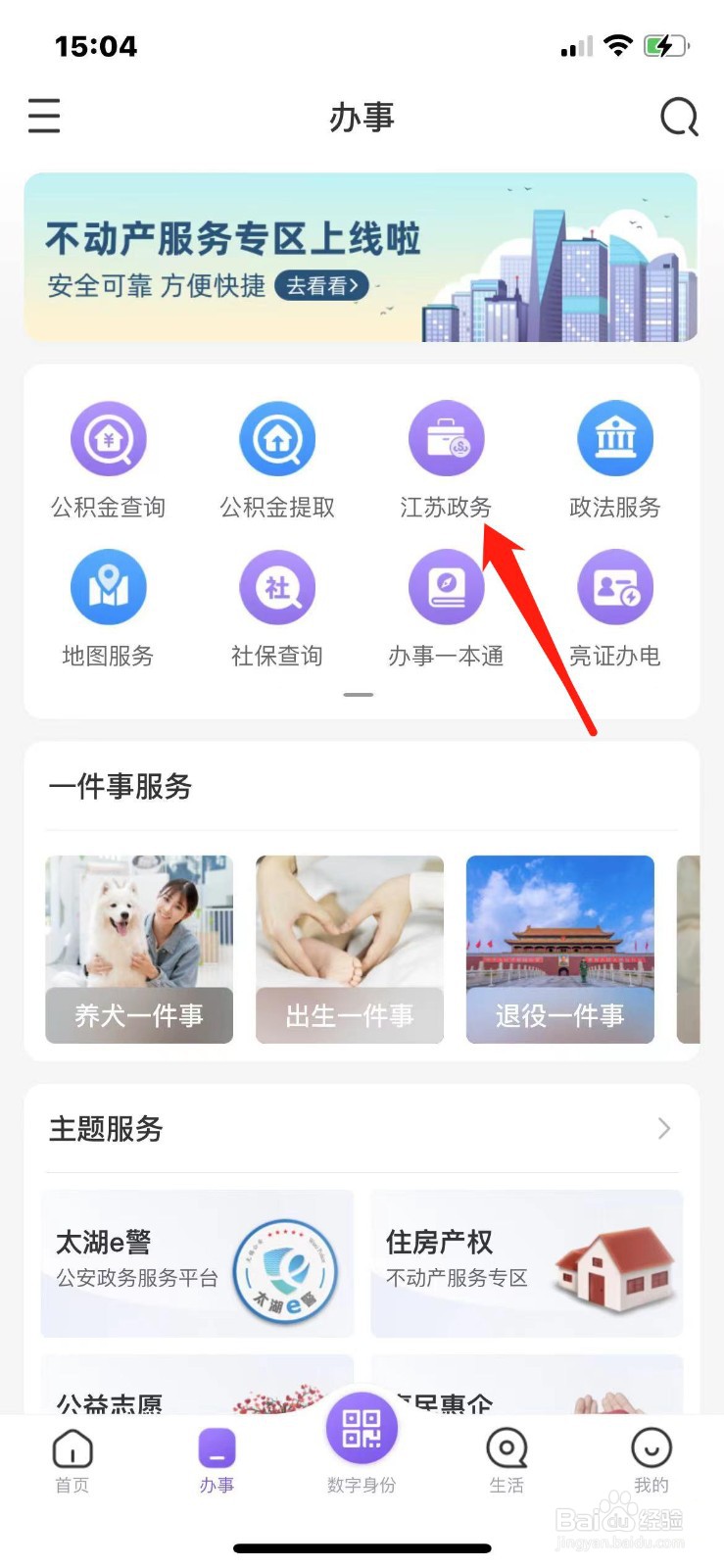 2/5第二步:进入办事页面,点击【江苏政务】。