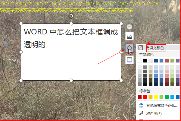4、点击文本框右侧的“形状填充按钮”,在弹出的页面中,点击“无填充颜色”。