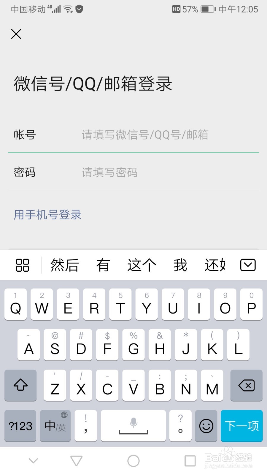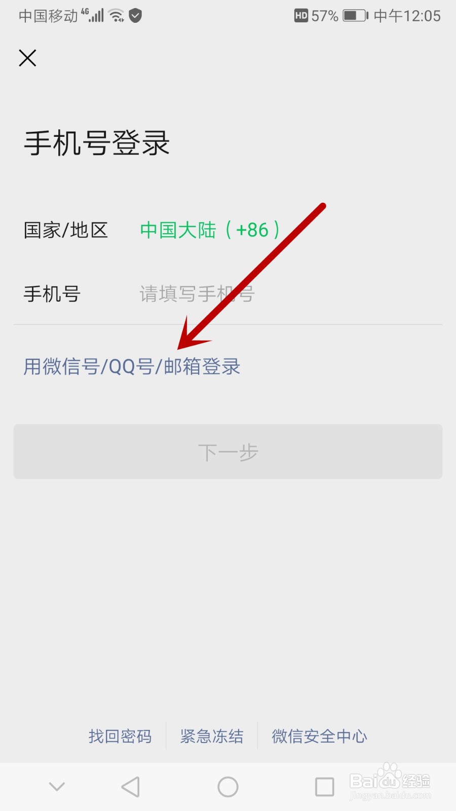 3/5然后点击‘用微信号/QQ号/邮箱登录’。