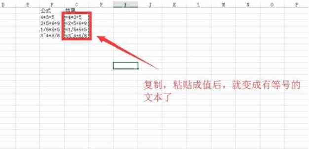 如下图,在结果处的单元格里使用“”来解决,输入=“=”“公式文本”,但是这时候还不能计算文本公式;