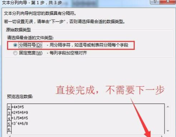 最后我们选择“数据”——“分列”,然后直接点击完成,文本就自动计算了,如下图结果。