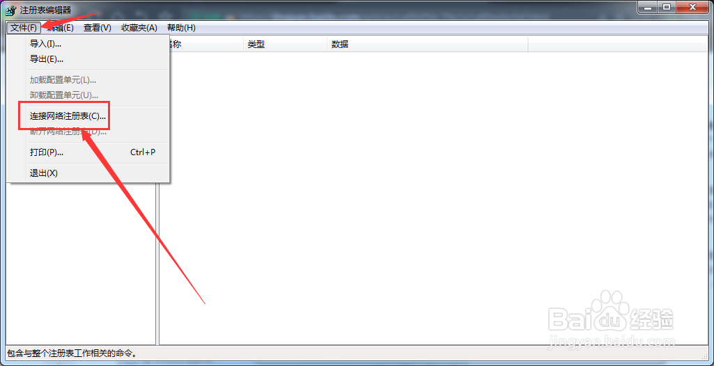 5/5点击“文件”菜单,再点击“连接网络注册表”按钮即可。
