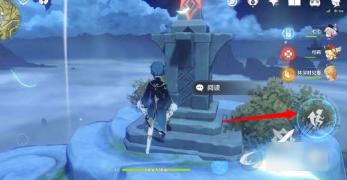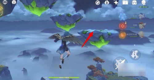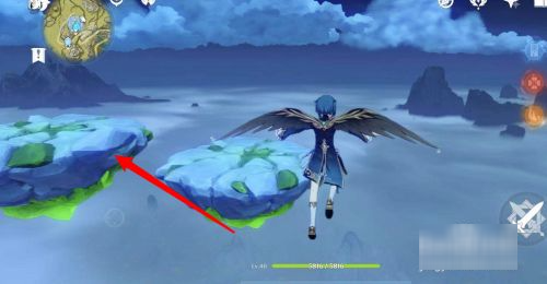 4、飞起来以后我们会看见三块石头,飞到石头上面去。