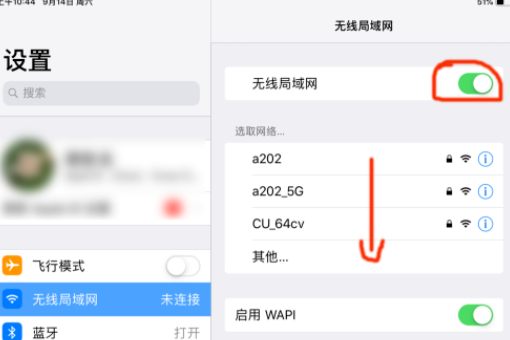 3、打开“无线局域网”开关按钮,自动搜索WiFi网络。