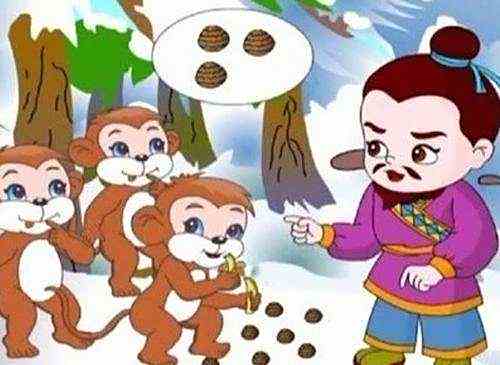出处:《庄子·齐物论》记载,有个玩猴子的人拿橡实喂猴子,他跟猴子说,早上给每个猴子三个橡子,晚上给四个,所有的猴子听了都急了;后来他又说,早上给四个,晚上给三个,所有的猴子就都高兴了。