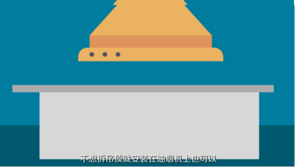 2、厨房已经吊顶,不想拆吊,可以安装在油烟机上。