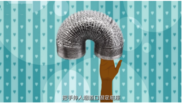 3、拆掉油烟机烟管,把手伸入烟道口固定底座,扇叶朝向烟道密封口内部开启。