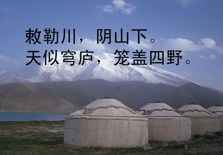 《敕勒歌》北朝民歌敕勒川阴山下,天似穹庐,笼盖四野。天苍苍,野茫茫,风吹草低见牛羊。