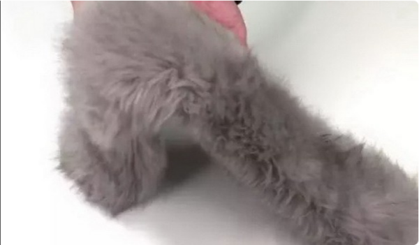 5、吹干全部水分后,干了之后,皮草又亮白如新了。