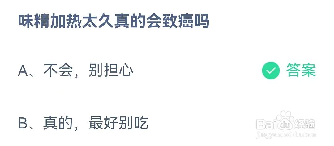 蚂蚁庄园问题,董墨味精加热太久真的会致癌吗?