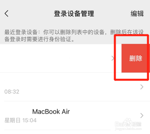 3/6第三步,在登录设备管理中,左滑登录过的设备点击删除即可。