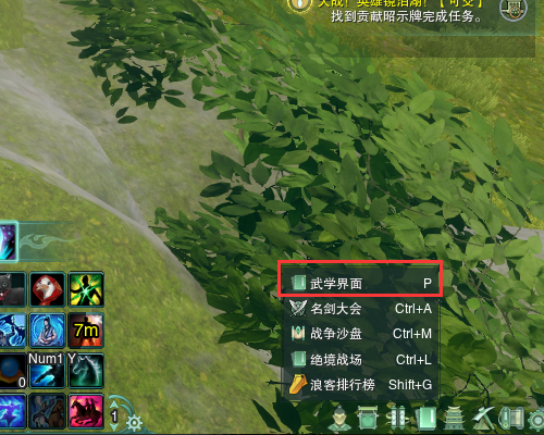 二、点击第四个功能模块后,加载完成会跳出五个小功能模块,只需要找到其中的武学界面,并点击勾选它。