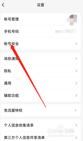 进入设置后,点击进入账号安全选项,再点击打开安全登录检查;