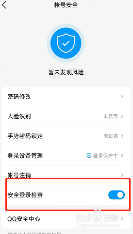 如图所示,可以看到开启了安全登录检查即可,这样就完成设置了。