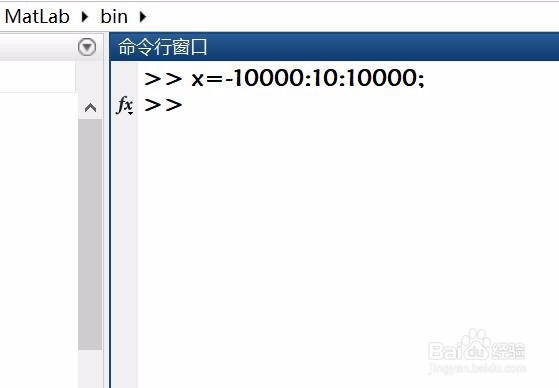 第二步,使用“-10000:10:10000;”创建一维数组,表示从-10000到10000,每隔10会取一个数字。这个一维数组用来作为函数点的横坐标。