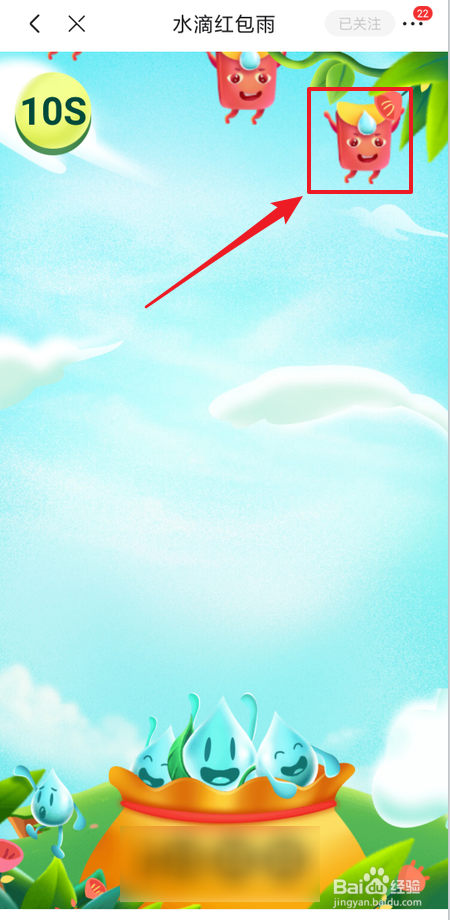 进入水滴红包雨界面后,当有红包雨落下时点击它即可。