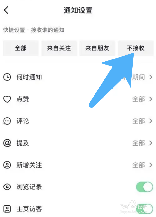 然后,我们在通知设置界面,点击右上角的不接收按钮;