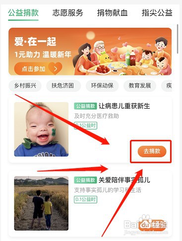 选择需要参加的公益活动后点击去捐款功能