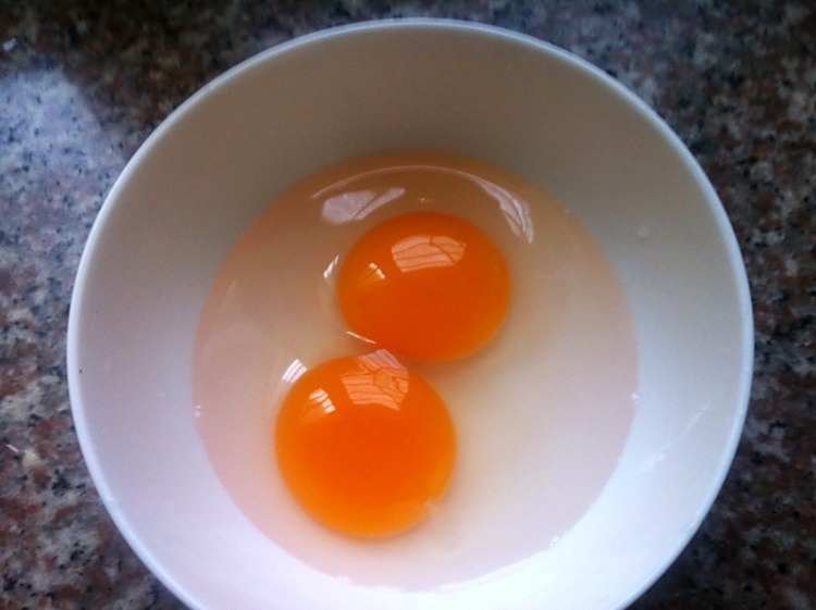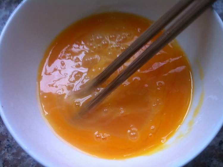 5、鸡蛋两枚,打入小碗内。