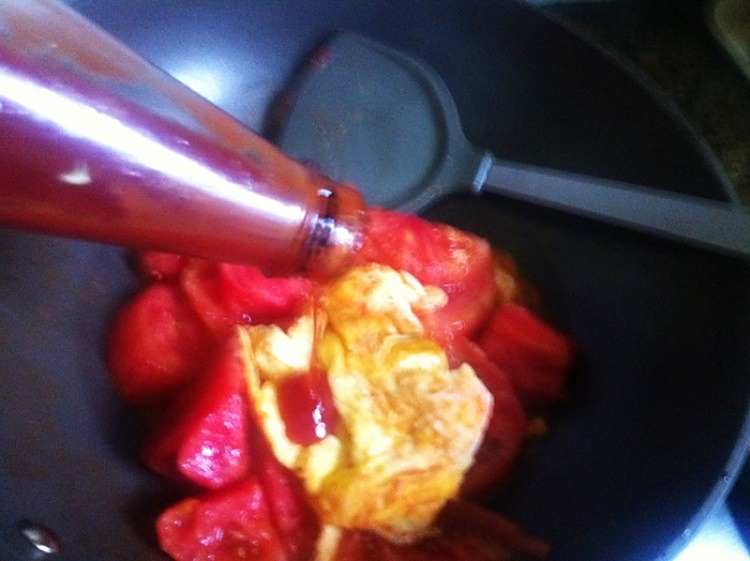12、倒入番茄一起翻炒,加入适量番茄沙司。