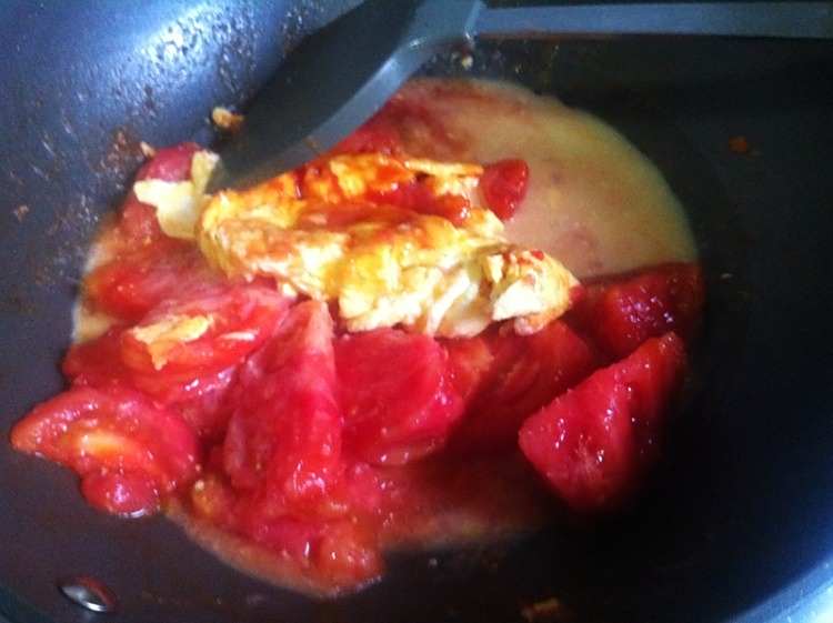 13、加入适量清水继续翻炒,然后煮至番茄软烂即可出锅。