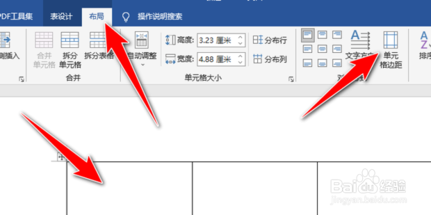 首先打开word,将光标放在表格中,点击布局下的单元格边距。