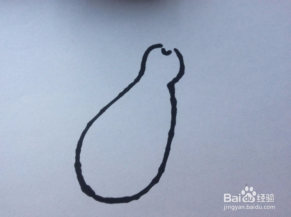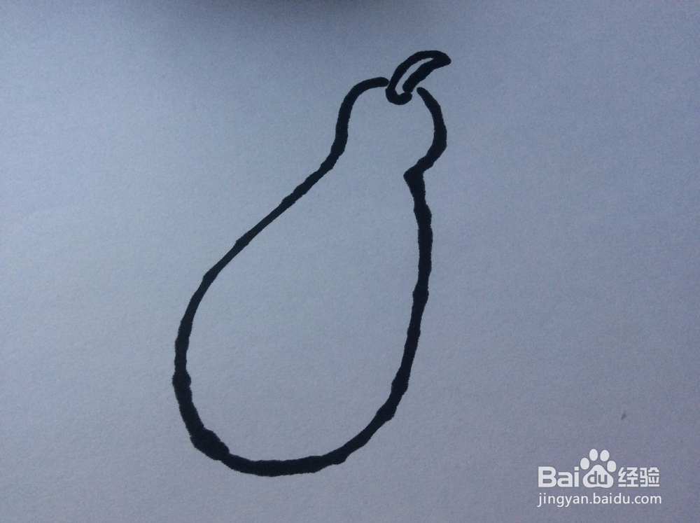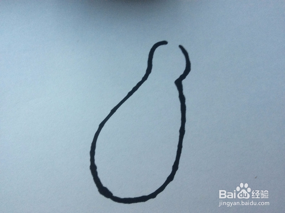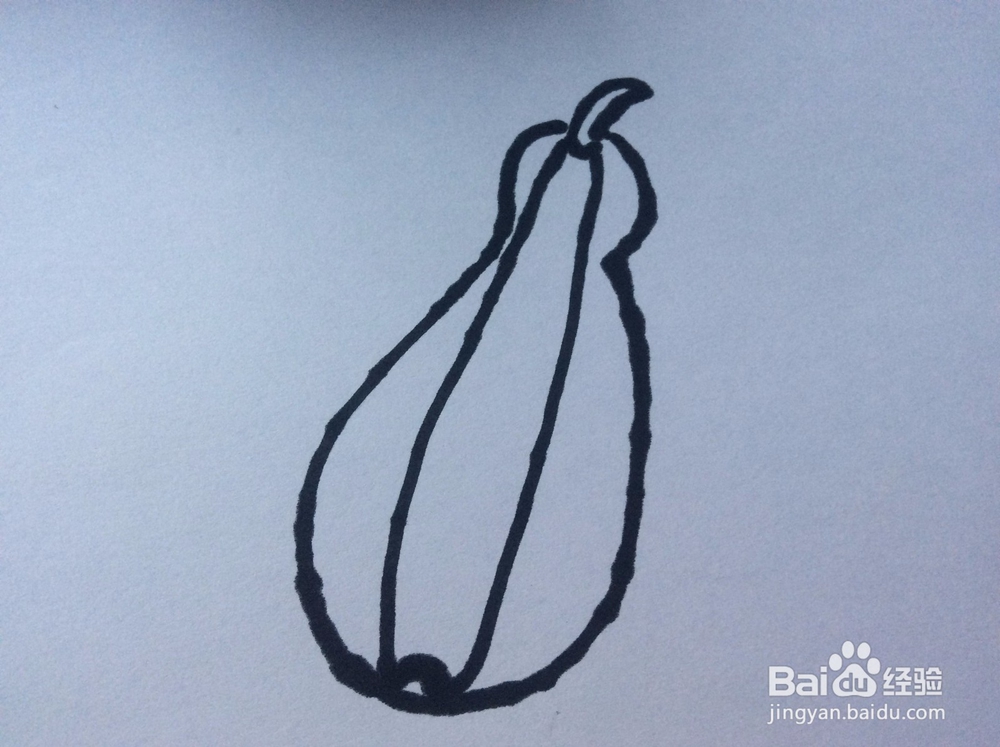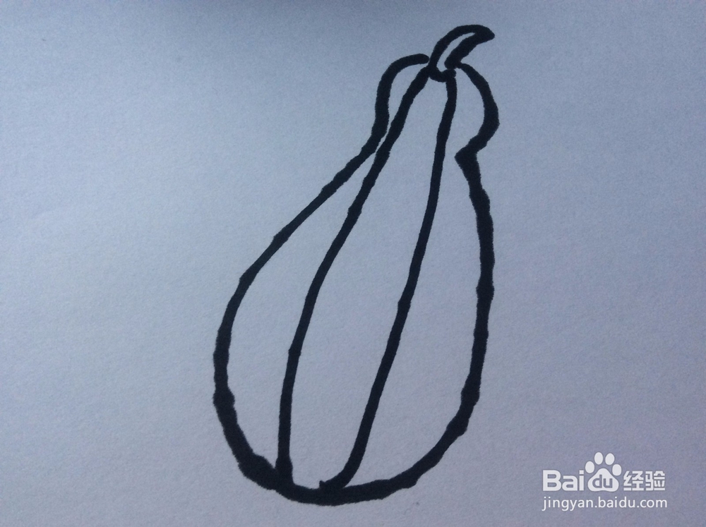 在画出的西葫芦形状的内部,画两条竖向的贯穿的弧线。