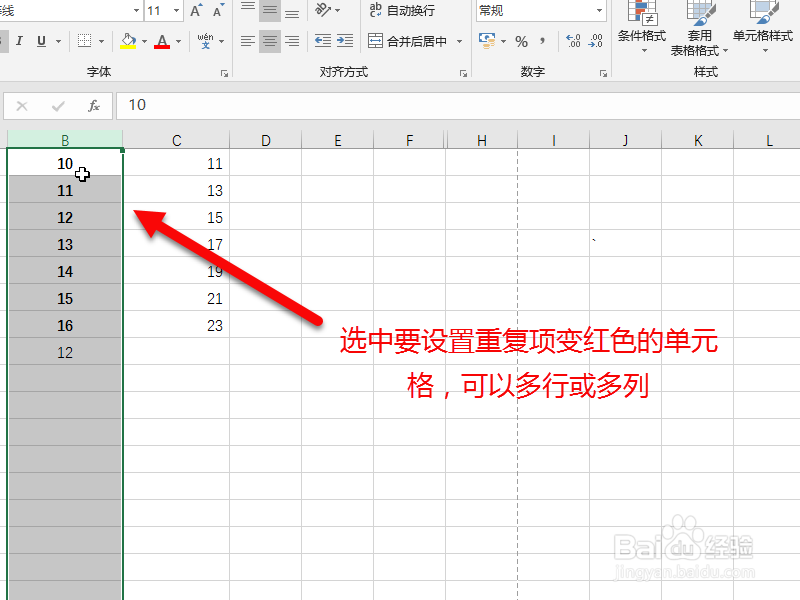 如何给每一行重复数字标红,excel表格如何设置重复标红,excel同一列重复数据变色,excel相同的显示红色,下面演示一下excel重复项如何设置红色