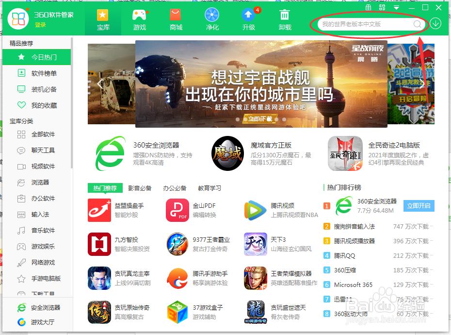 在搜索框中输入“我的世界老版本中文版”并且点击搜索按钮。