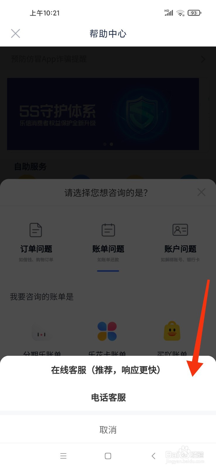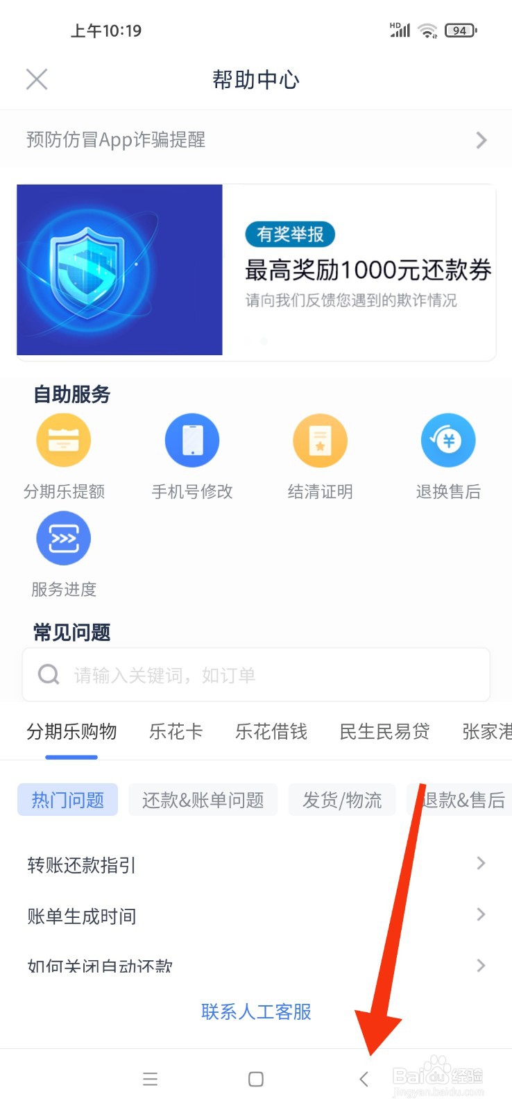 打开分期乐,如下图,看到联系人工客服