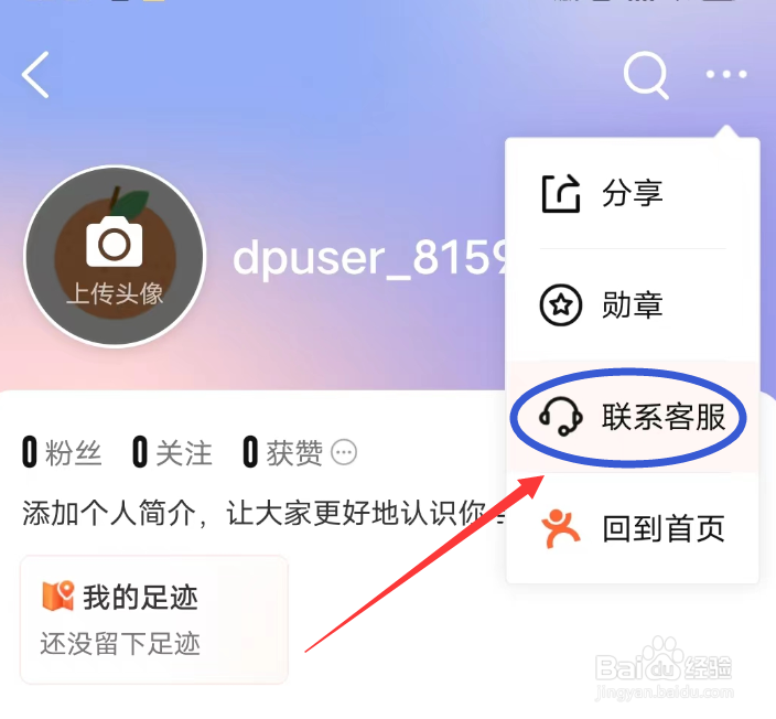 第三步:进入我的界面,点击上方三个点图标,选择【联系客服】