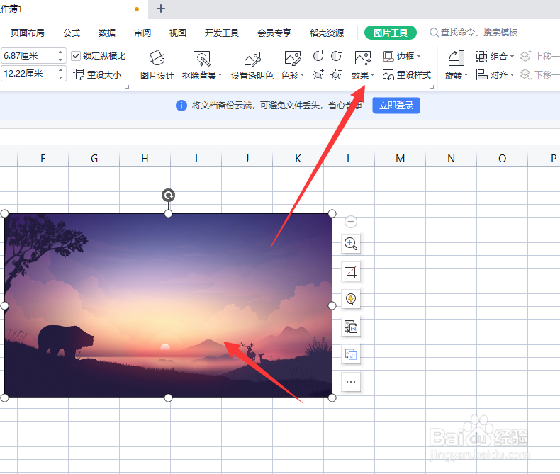 将表格文件打开后,先添加图片,再打开下方的图片效果