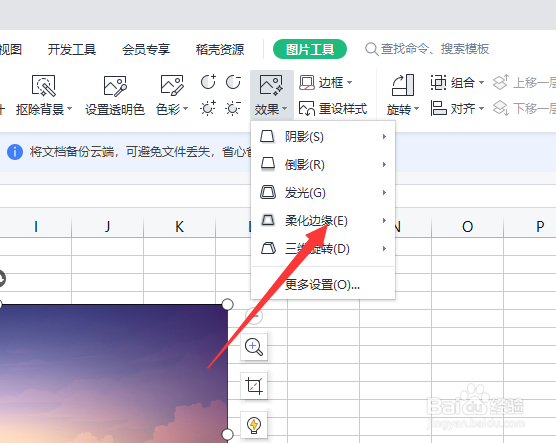 怎么将WPS表格中的图片柔化边缘