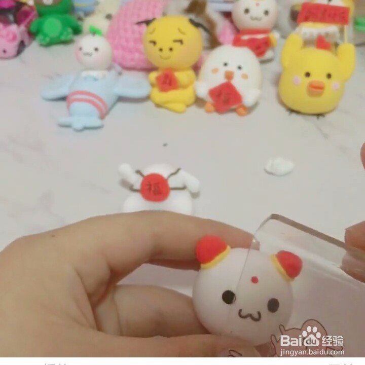 黑色粘土揉搓成小团子的小眼睛。如图所示