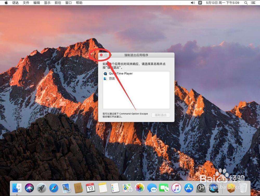 点击左上角的红色叉号,关闭强制退出,返回桌面