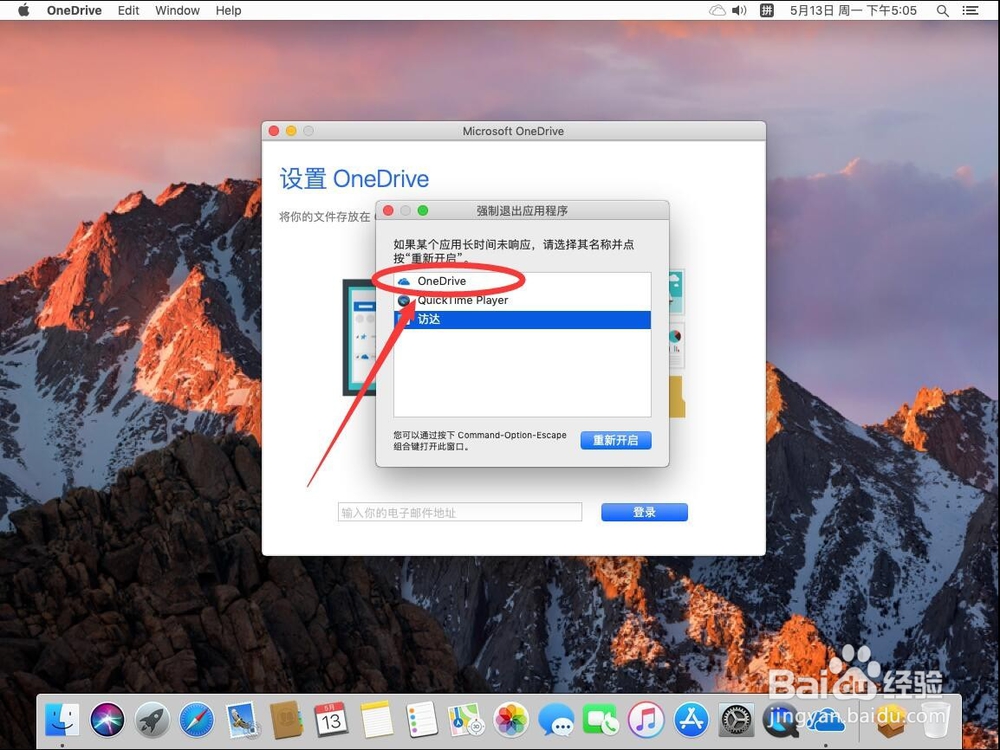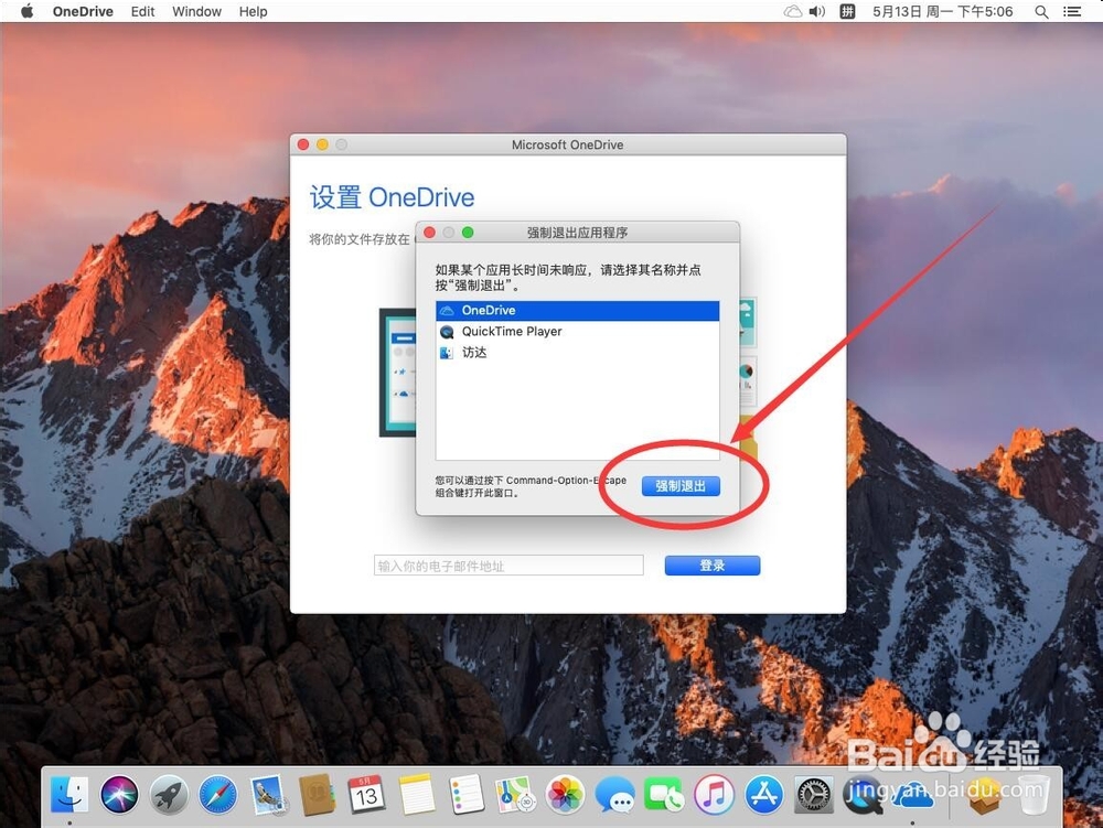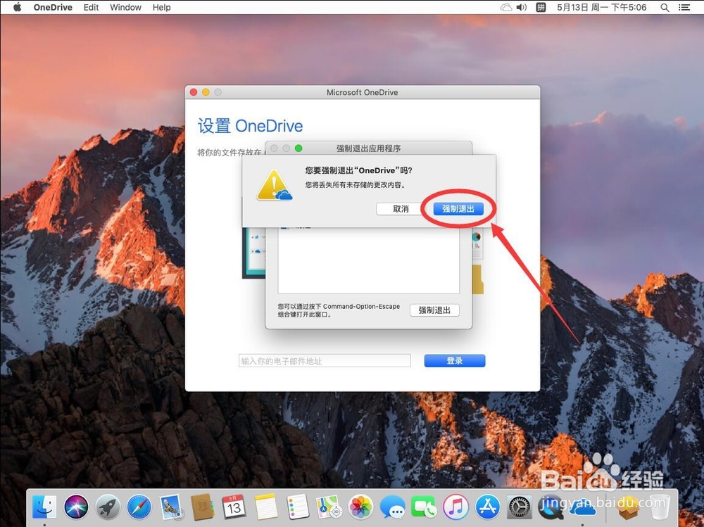 弹出提示是否要强制退出,选择“强制退出”,这样OneDrive就被完全退出了