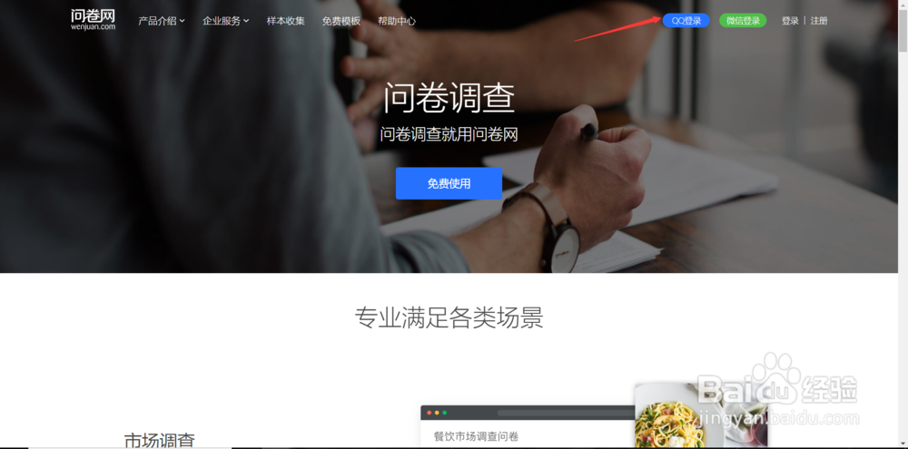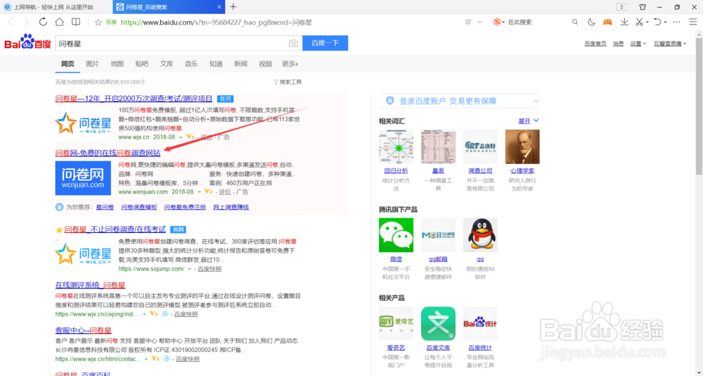 在搜索中搜索问卷星,并进入第二个搜索项。