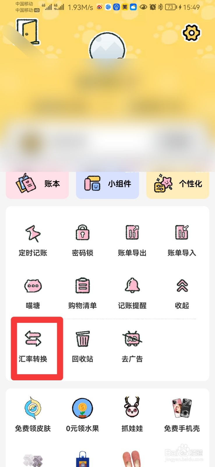 打开喵喵记账,在我的页面点击【汇率换算】。