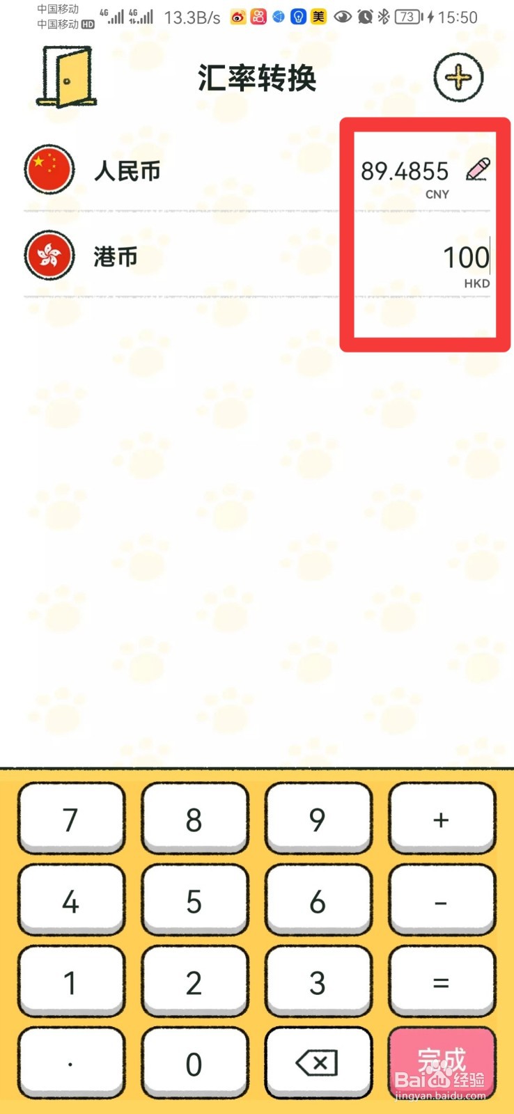 返回页面后输入港币金额,即可看到兑换后的人民币金额。