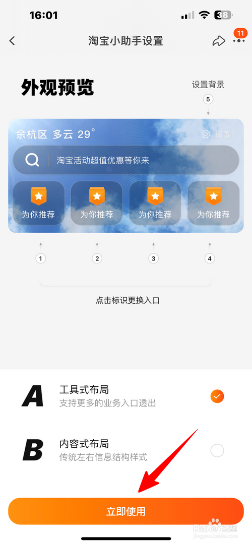 点选自己喜欢的布局,再点击“立即使用”即可。
