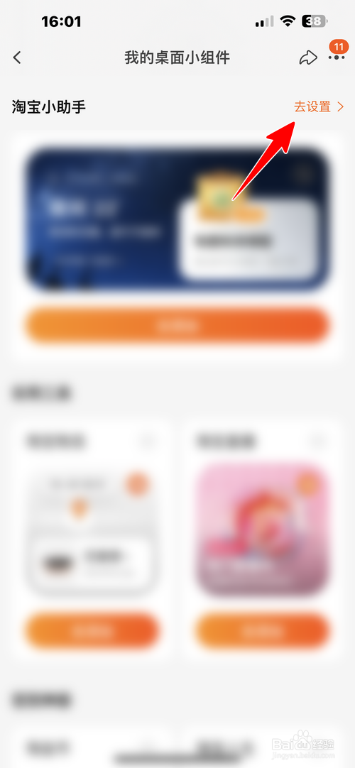 点击淘宝小组件后面的“去设置”。