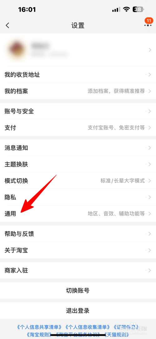 点击“通用”。