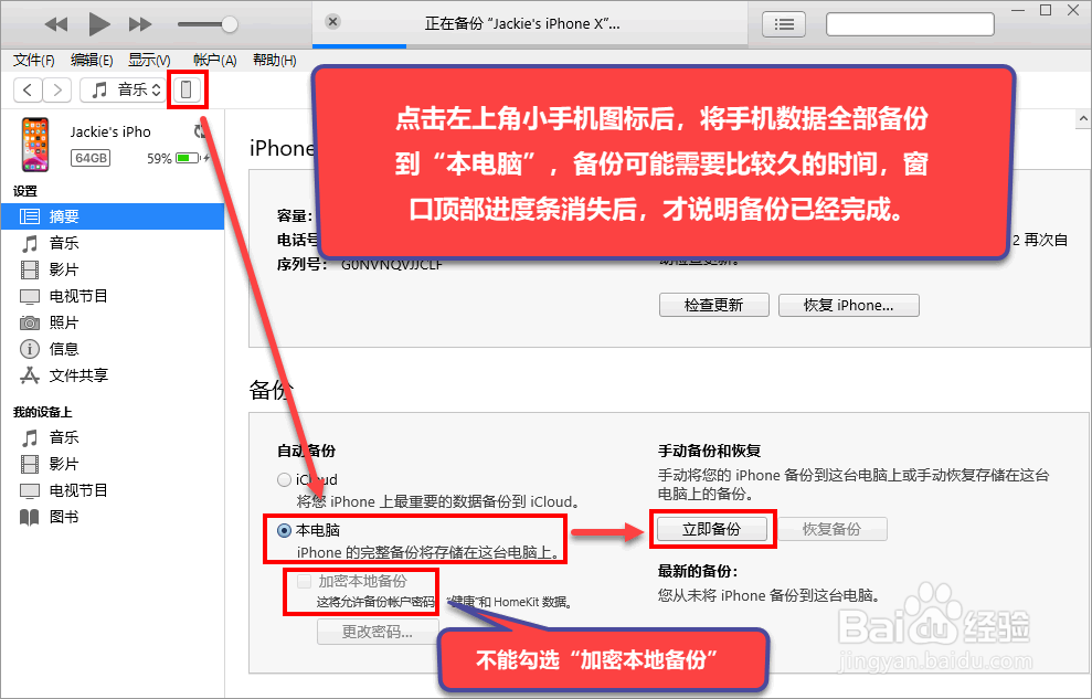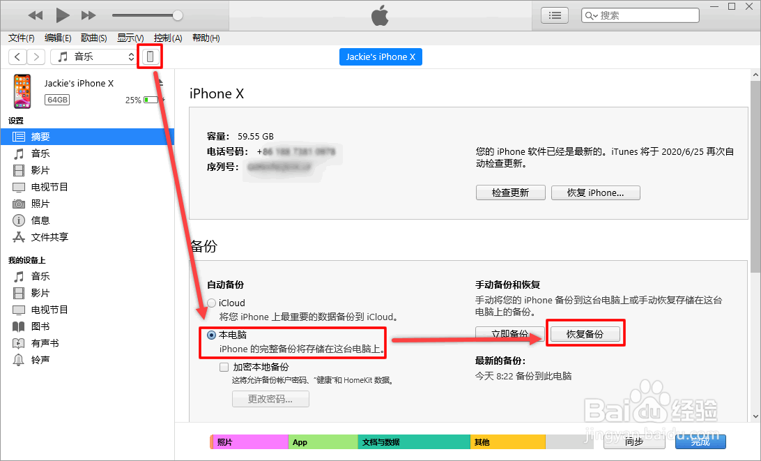 在电脑上使用iTunes软件将手机数据备份到电脑上。