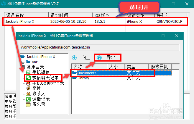 前面就已经说过,手机备份数据的话会把所有app生成的数据备份到电脑上,但我们只需要微信聊天记录数据,因此,接下来需要使用楼月免费iTunes备份管理器,把保存了微信聊天记录的Documents文件夹从备份数据中提取出来。
