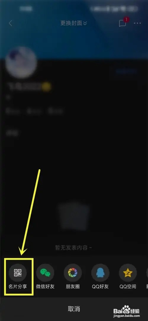 接着进入分享窗口,点击“名片分享”选项。
